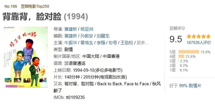 只须两部国产电影领有此盛誉,一部是被无数东谈主奉为不朽经典的《霸王别姬》,而另一部的名字则少有东谈主知,它即是1994年上映的《背靠背,脸对脸》。